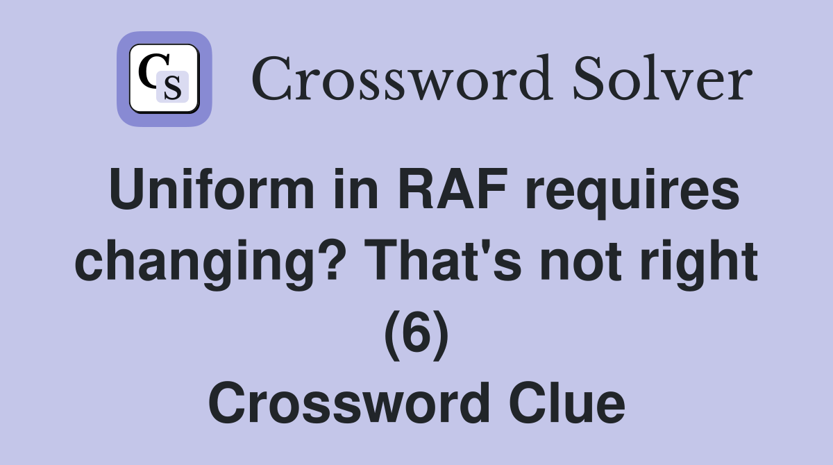 Uniform in RAF requires changing? That #39 s not right (6) Crossword Clue