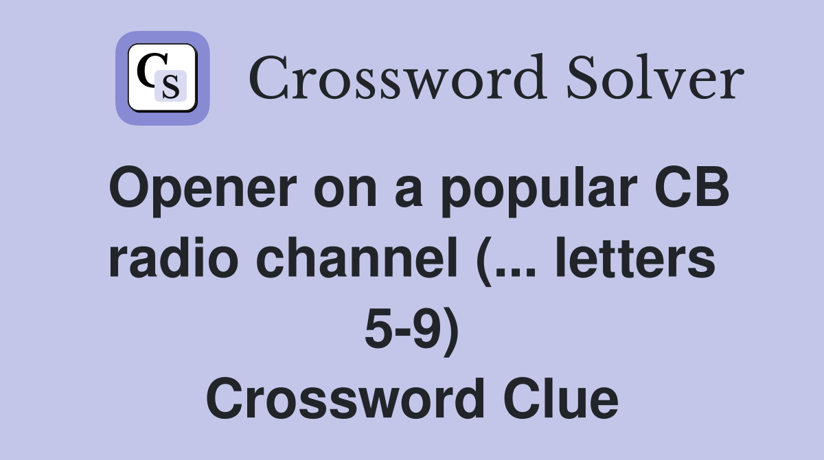Opener on a popular CB radio channel ( letters 5 9) Crossword Clue