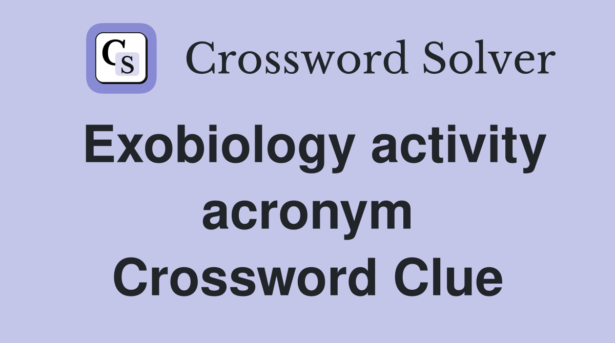 Exobiology activity acronym Crossword Clue Answers Crossword Solver