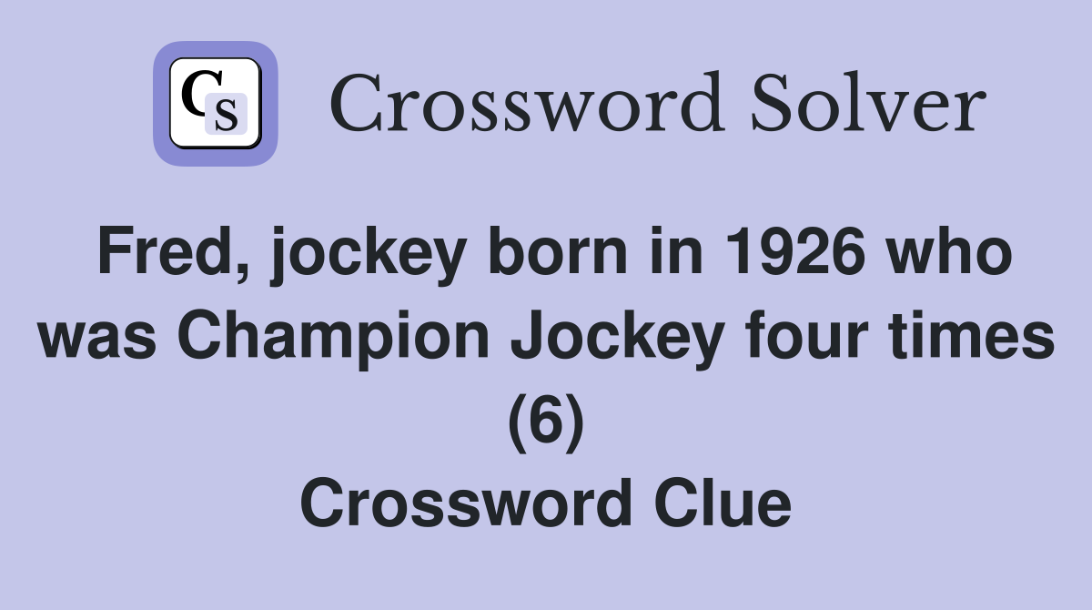Fred jockey born in 1926 who was Champion Jockey four times (6