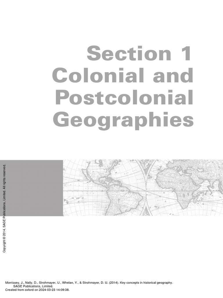 Key Concepts in Historical Geography (Section 1 Colonial and