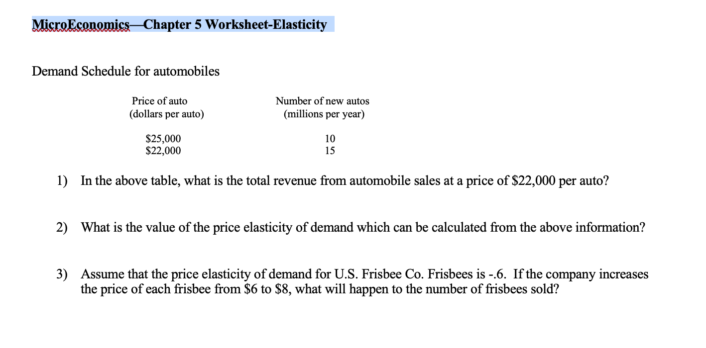 Solved MicroEconomics Chapter 5 Worksheet Elasticity Demand Chegg com