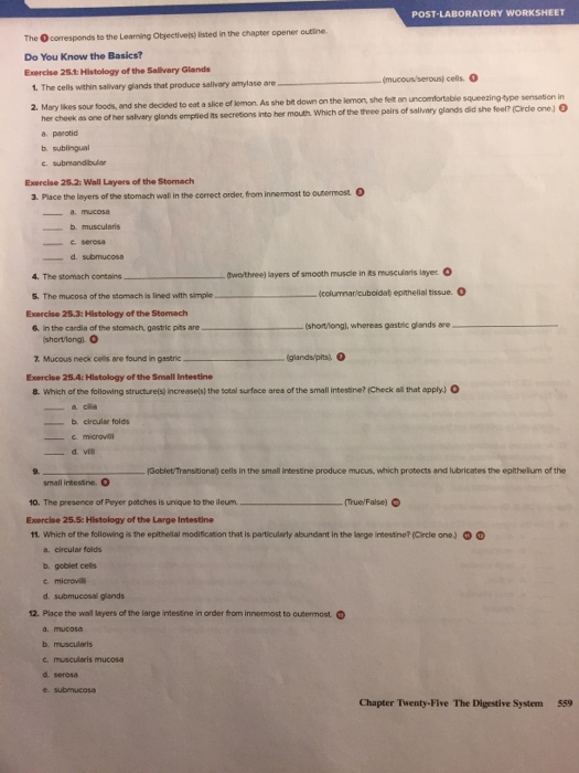 Chapter 5 Histology Post Laboratory Worksheet Answers Printable