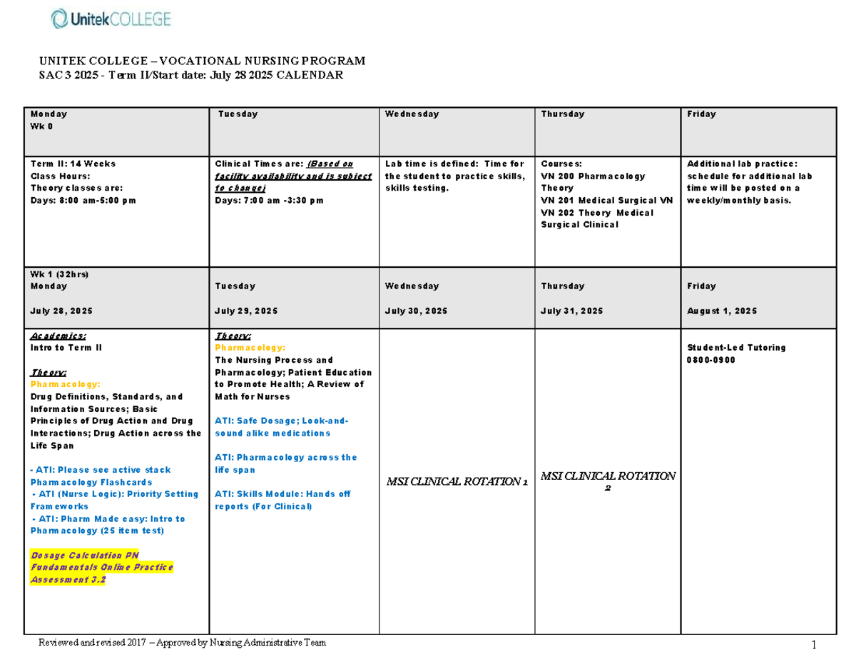 UNITEK COLLEGE VN SAC 3 2025 Term II Calendar and Schedule Studocu