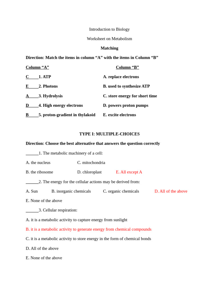 SOLUTION: An Introduction to Metabolism Worksheet Studypool