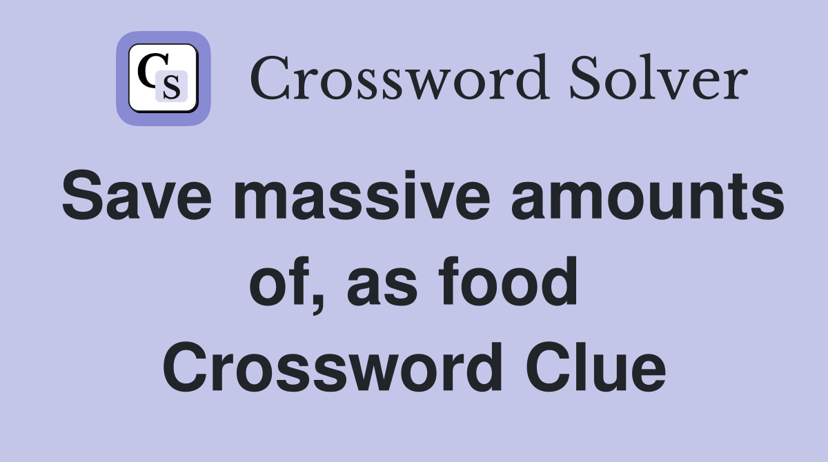 Save massive amounts of as food Crossword Clue Answers Crossword