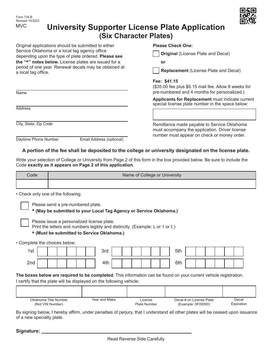 Form 734 B Download Fillable PDF or Fill Online University Supporter