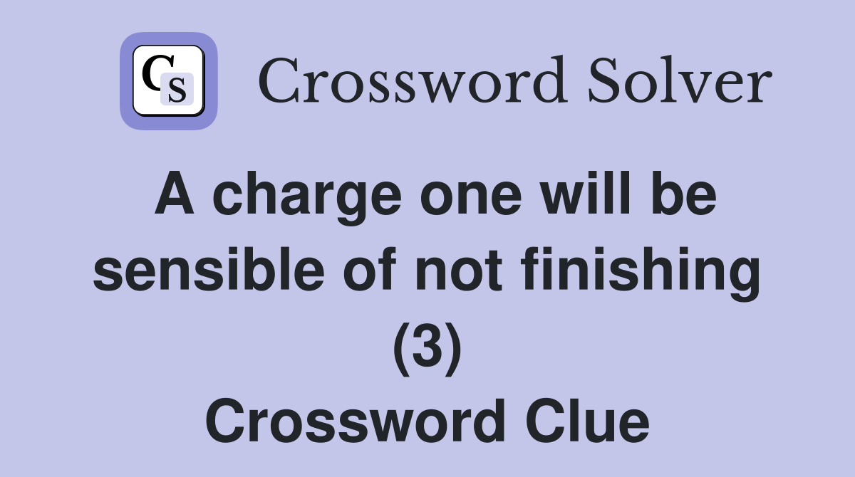 A charge one will be sensible of not finishing (3) Crossword Clue