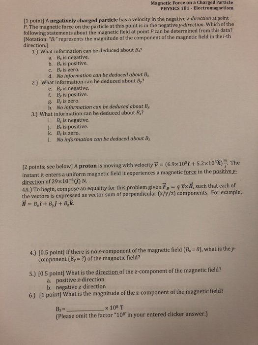 Solved Magnetic Force on a Charged Particle PHYSICS 181 Chegg com