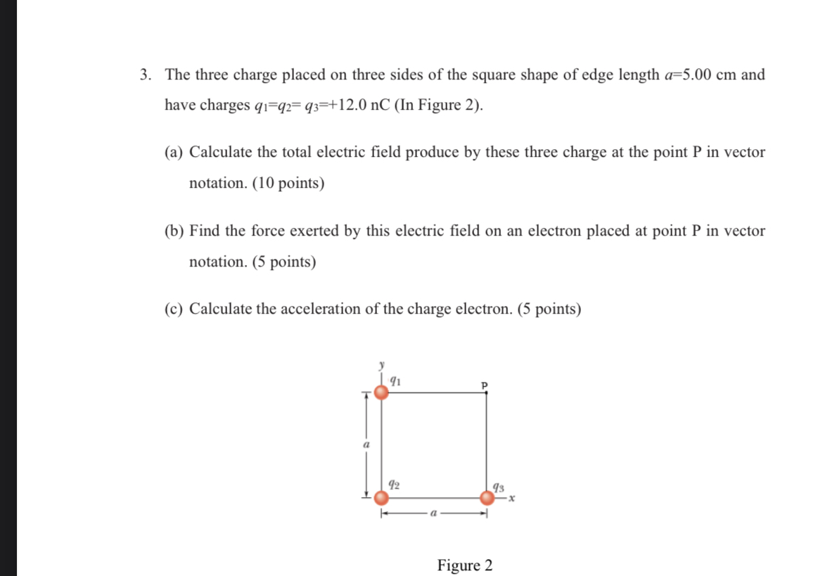 SOLVED: 3 The three charge placed on three sides of the square shape
