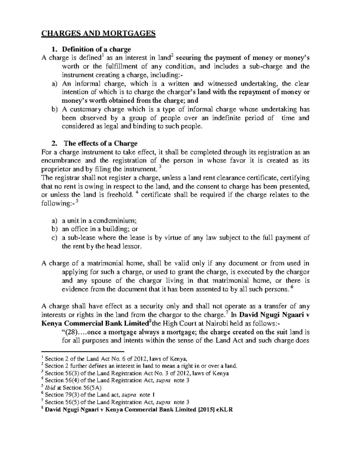 Charges AND Charges CHARGES AND MORTGAGES Definition of a charge A
