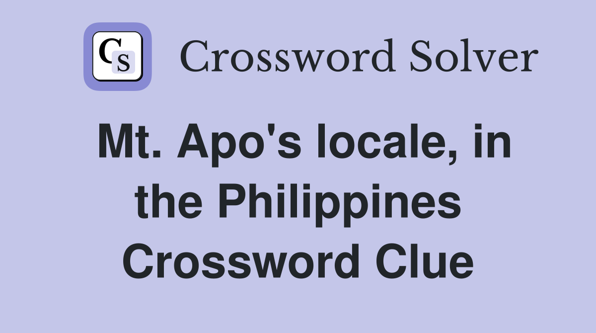 Mt Apo #39 s locale in the Philippines Crossword Clue Answers