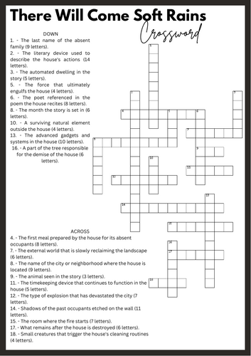 There Will Come Soft Rains by Ray Bradbury Crossword Review Activity No