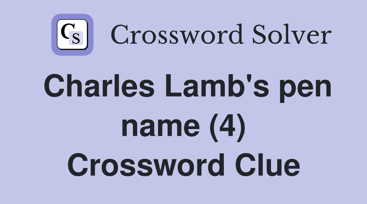 Charles Lamb s pen name (4) Crossword Clue Answers Crossword Solver