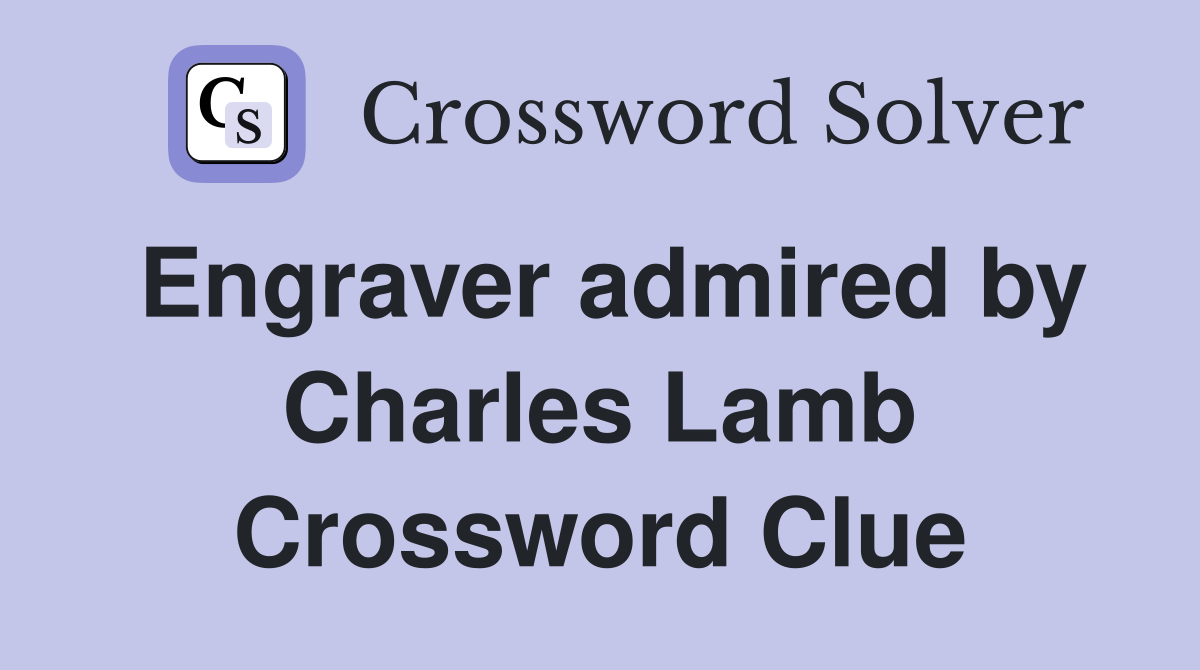 Engraver admired by Charles Lamb Crossword Clue Answers Crossword