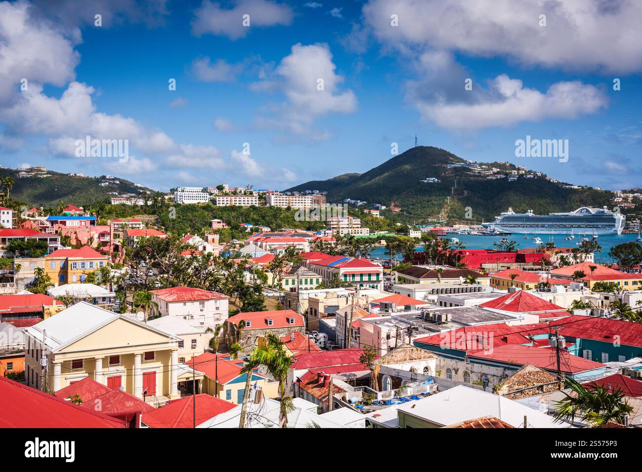 The cityscape of downtown Charlotte Amalie the capital of the US