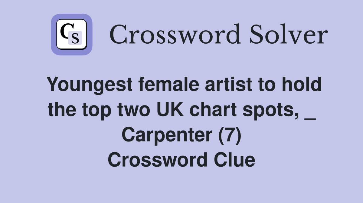Youngest female artist to hold the top two UK chart spots Carpenter