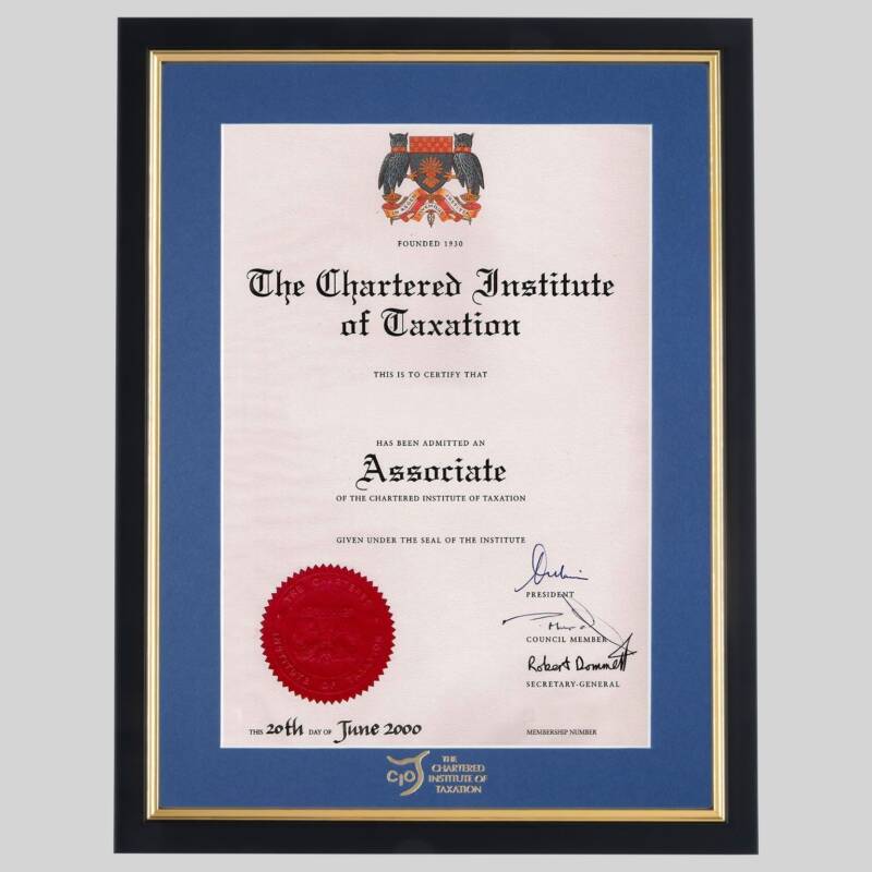 Chartered Institute of Taxation certificate frame Professional