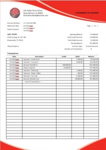 USA JP Morgan Chase bank statement template in doc and pdf file