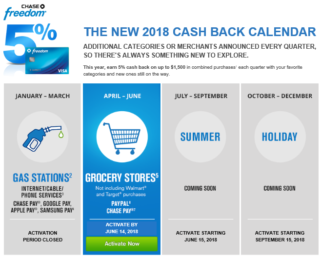 Chase Freedom Calendar 2018 Categories That Earn 5% Cash Back
