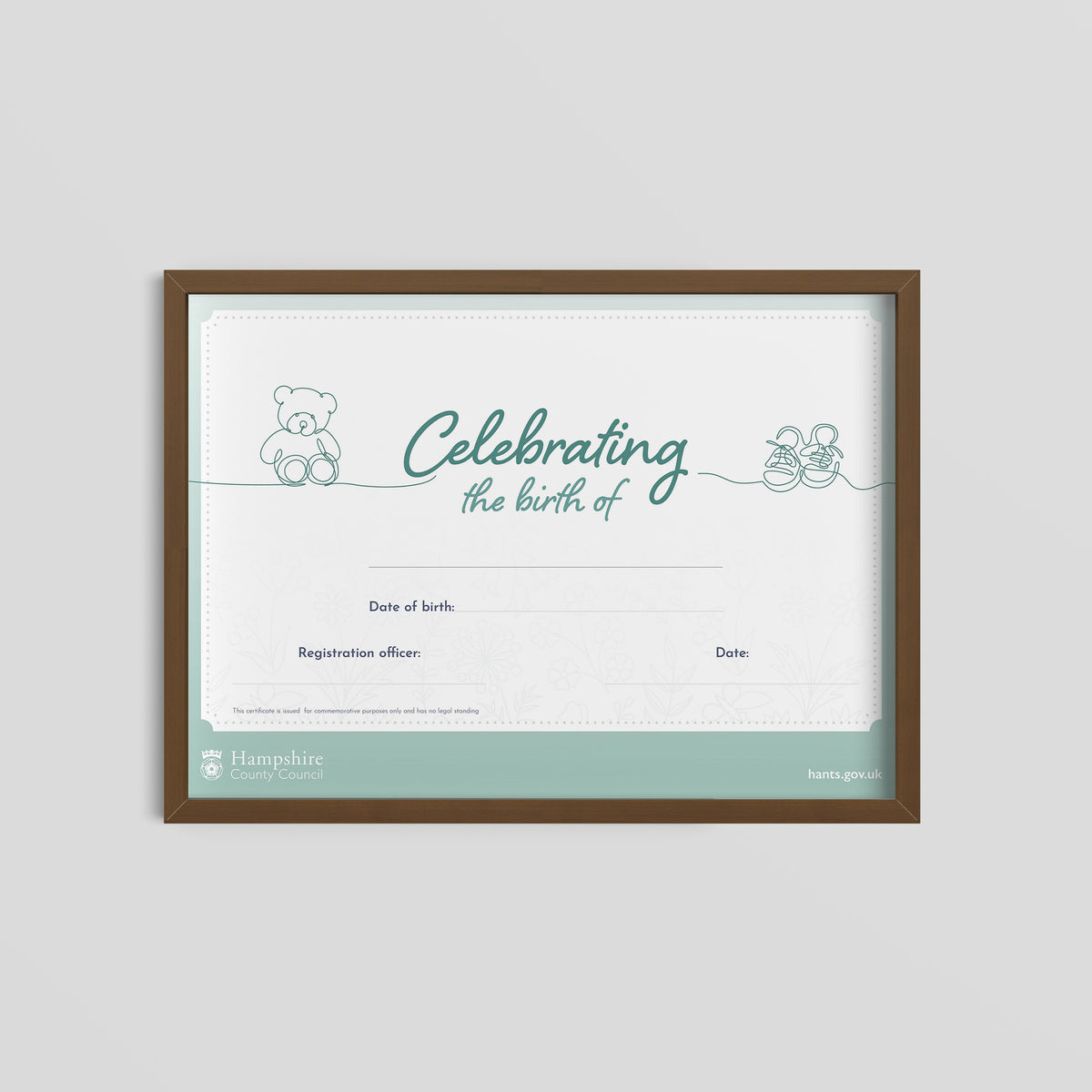 Commemorative Birth Certificate Style 2 Hampshire County Council Shop