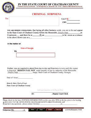 Fillable Online chathamcourts Criminal Subpoena Chatham County Courts