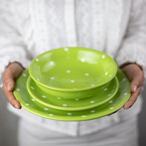 Dinnerware Set Pottery Dinnerware Handmade Ceramic Lime Green and