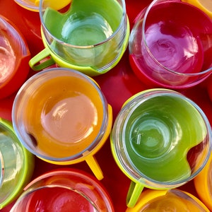 Vintage Drink Ups 14 Piece Rare Set Clear Roly Poly Glasses in Bright