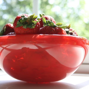 Hand Blown Glass Bowl Medium Bowl Ruby Red Bright Handblown the