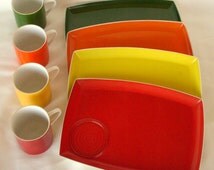 Figgjo 50 #39 s Coffee Set with Colored Cups and Saucers