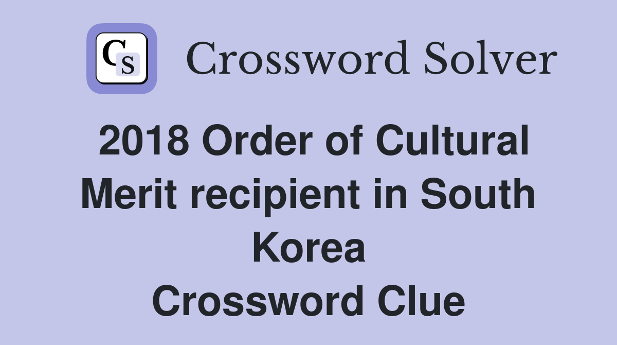 2018 Order of Cultural Merit recipient in South Korea Crossword Clue