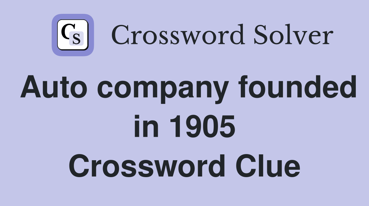 Auto company founded in 1905 Crossword Clue Answers Crossword Solver