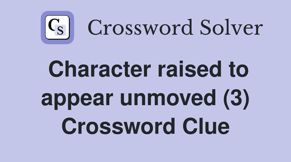 Character raised to appear unmoved (3) Crossword Clue Answers