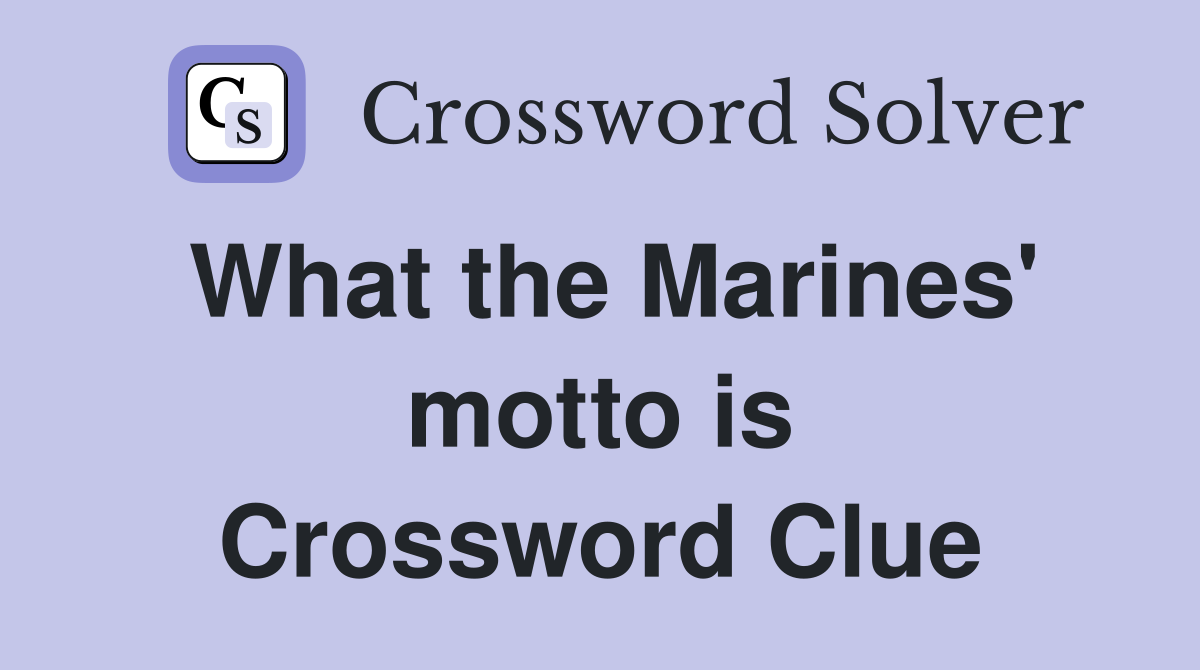What the Marines #39 motto is Crossword Clue Answers Crossword Solver