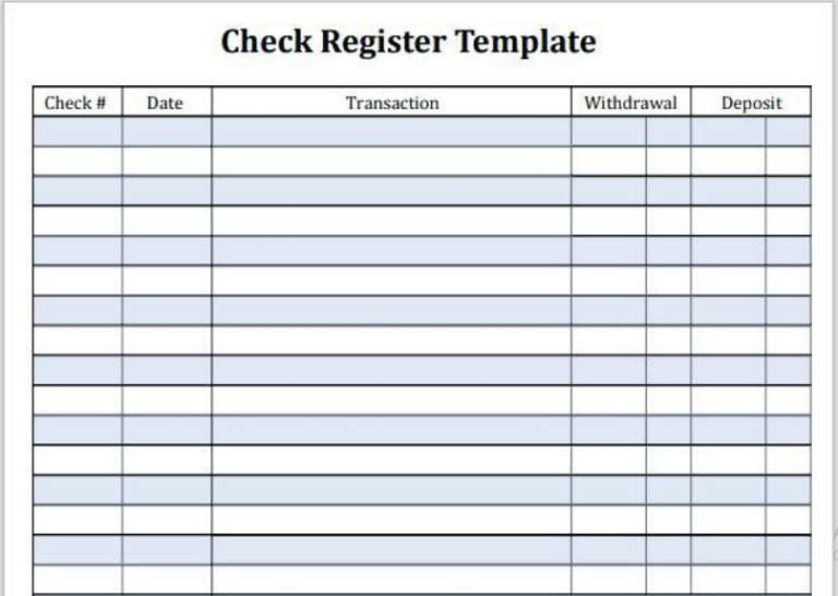 Printable Check Register Template