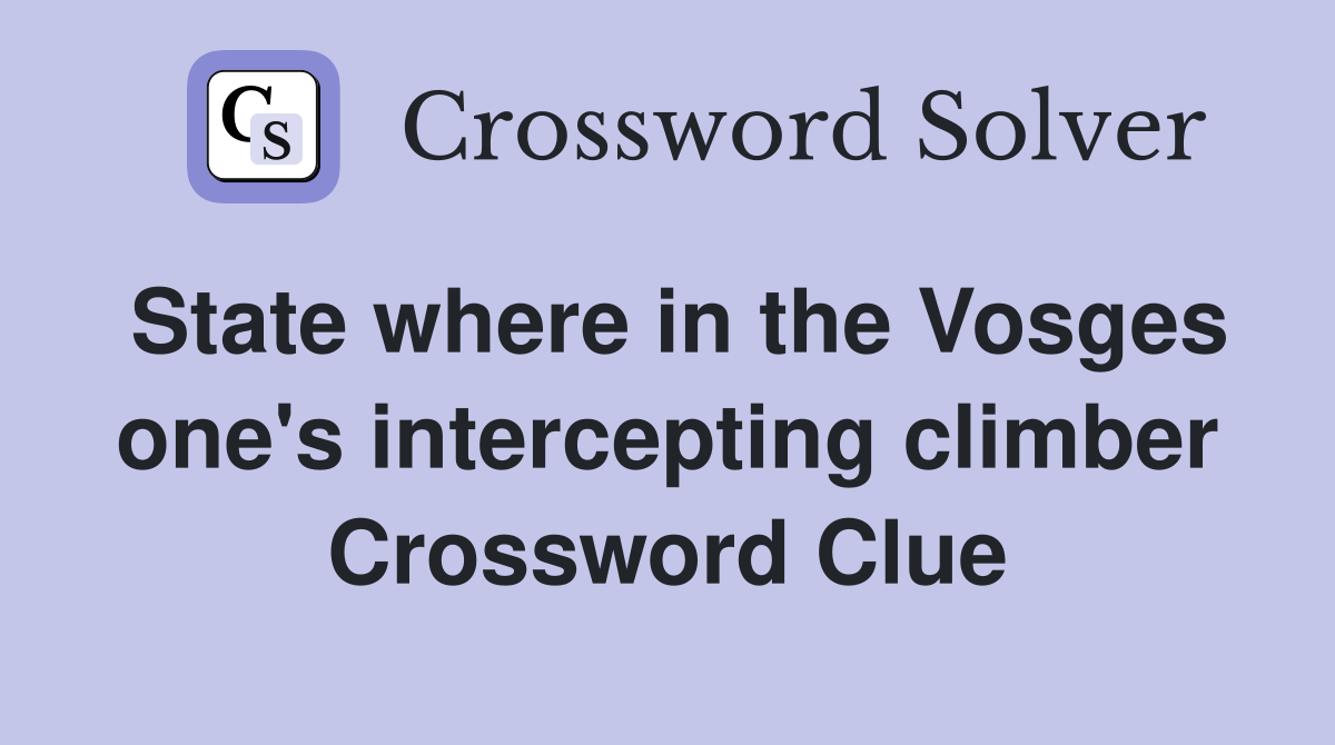 State where in the Vosges one #39 s intercepting climber Crossword Clue