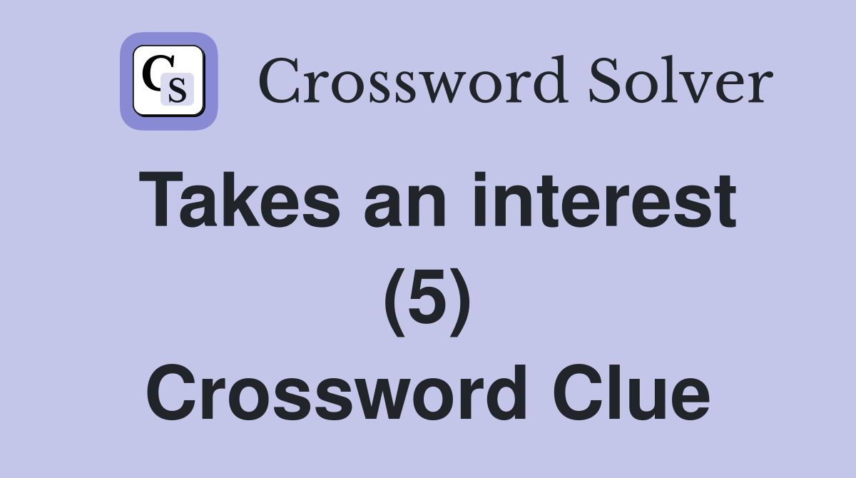 Takes an interest (5) Crossword Clue Answers Crossword Solver