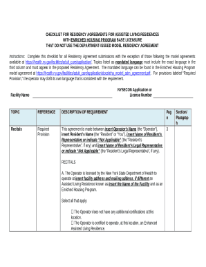 EHP Residency Agreement Checklist Residency Agreement Checklist Doc