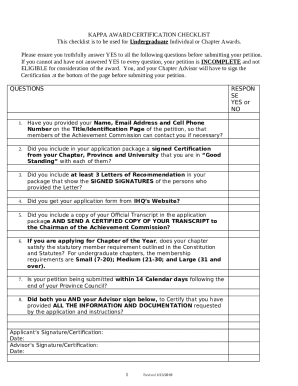 KAPPA AWARD CERTIFICATION CHECKLIST Doc Template pdfFiller