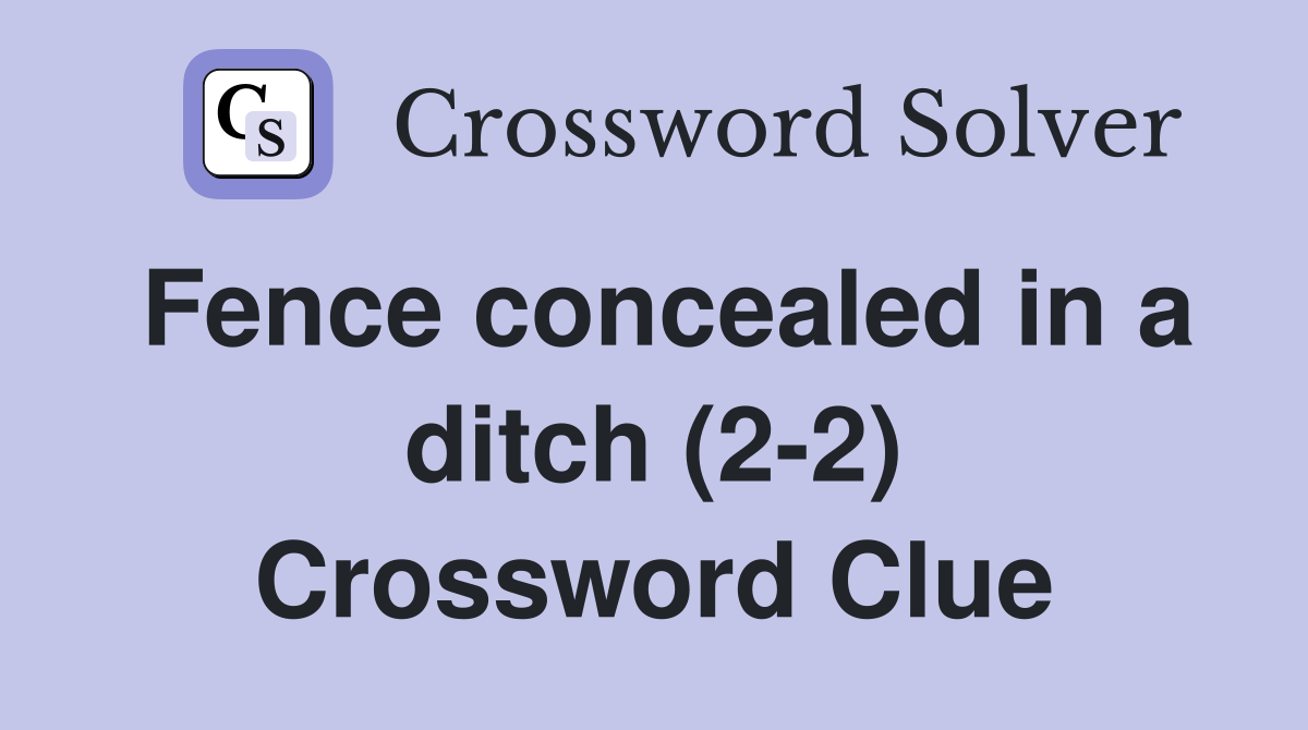 Fence concealed in a ditch (2 2) Crossword Clue Answers Crossword