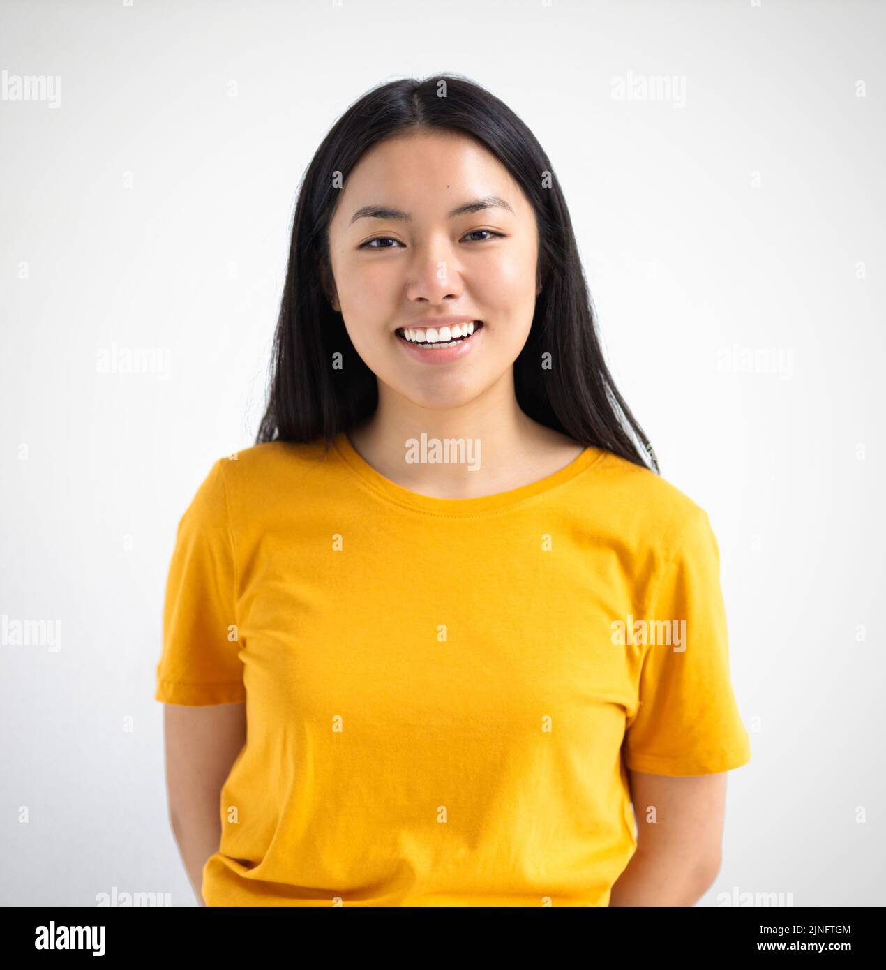 Portrait of Attractive Cheerful Caucasian Girl in Motivational T shirt