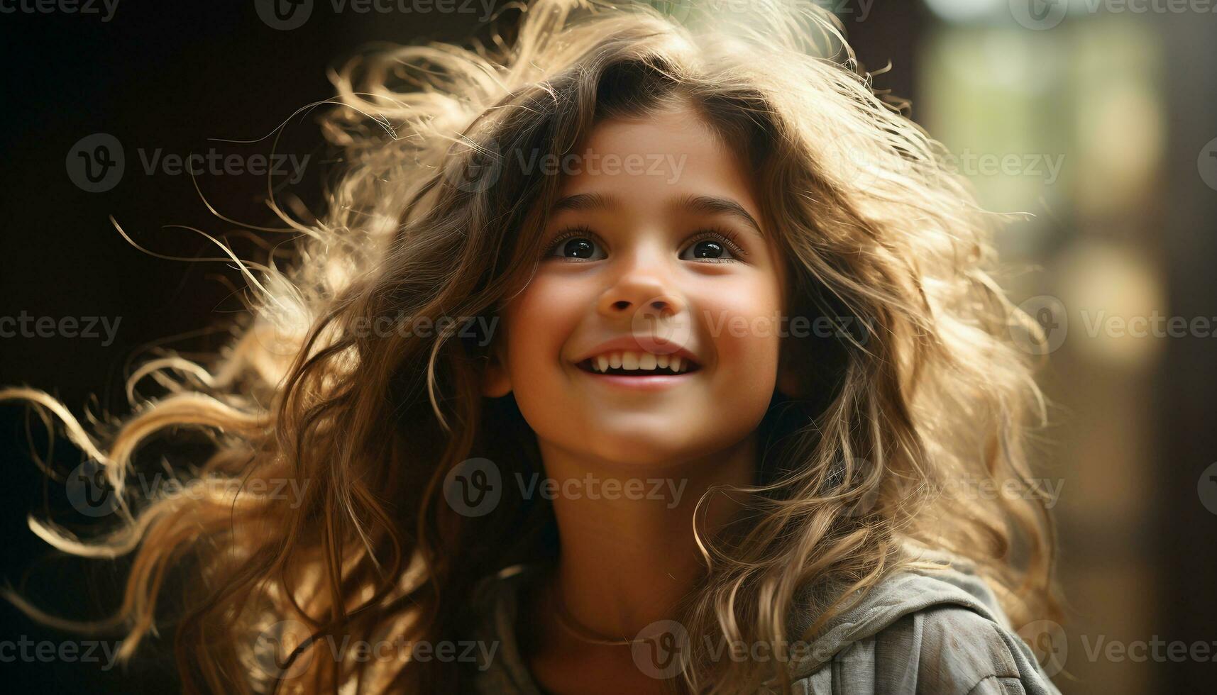 Picture of happy cheerful girl having fun on wheat field beautiful