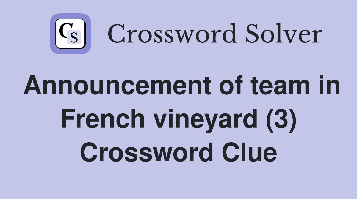 Announcement of team in French vineyard (3) Crossword Clue Answers