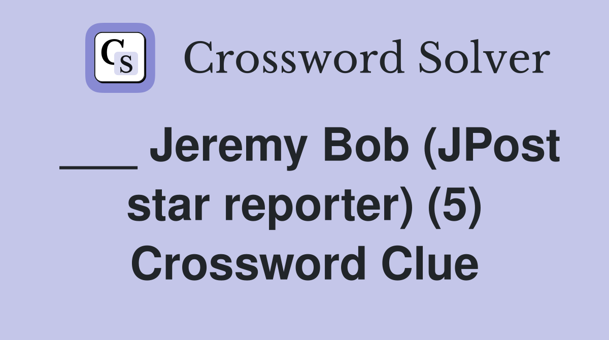 Jeremy Bob (JPost star reporter) (5) Crossword Clue Answers