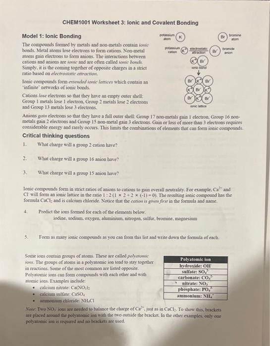 Solved CHEM1001 Worksheet 3: Ionic and Covalent Bonding Chegg com