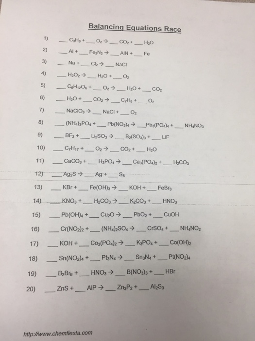 Chemfiesta Balancing Equations Race Worksheet Answers
