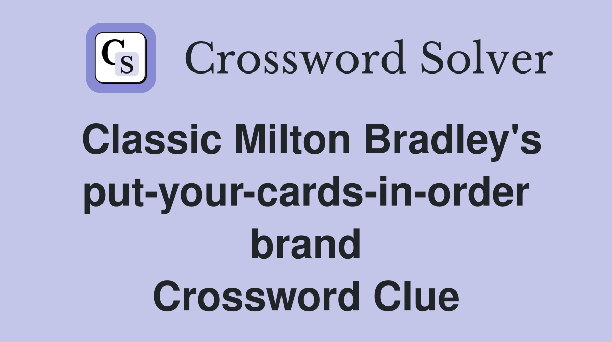 Classic Milton Bradley #39 s put your cards in order brand Crossword Clue