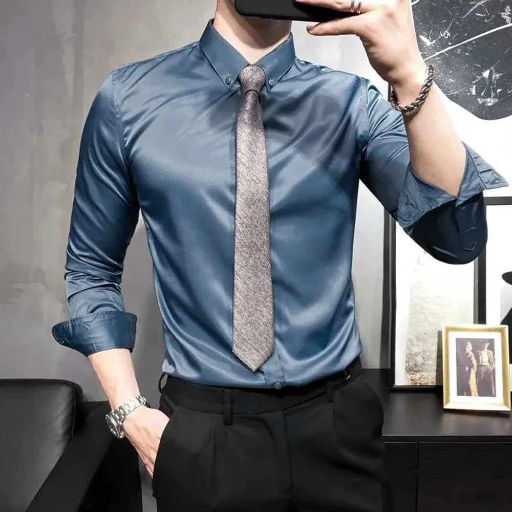 Chemise en Satin soyeux pour homme coupe Slim couleur vive l gante l