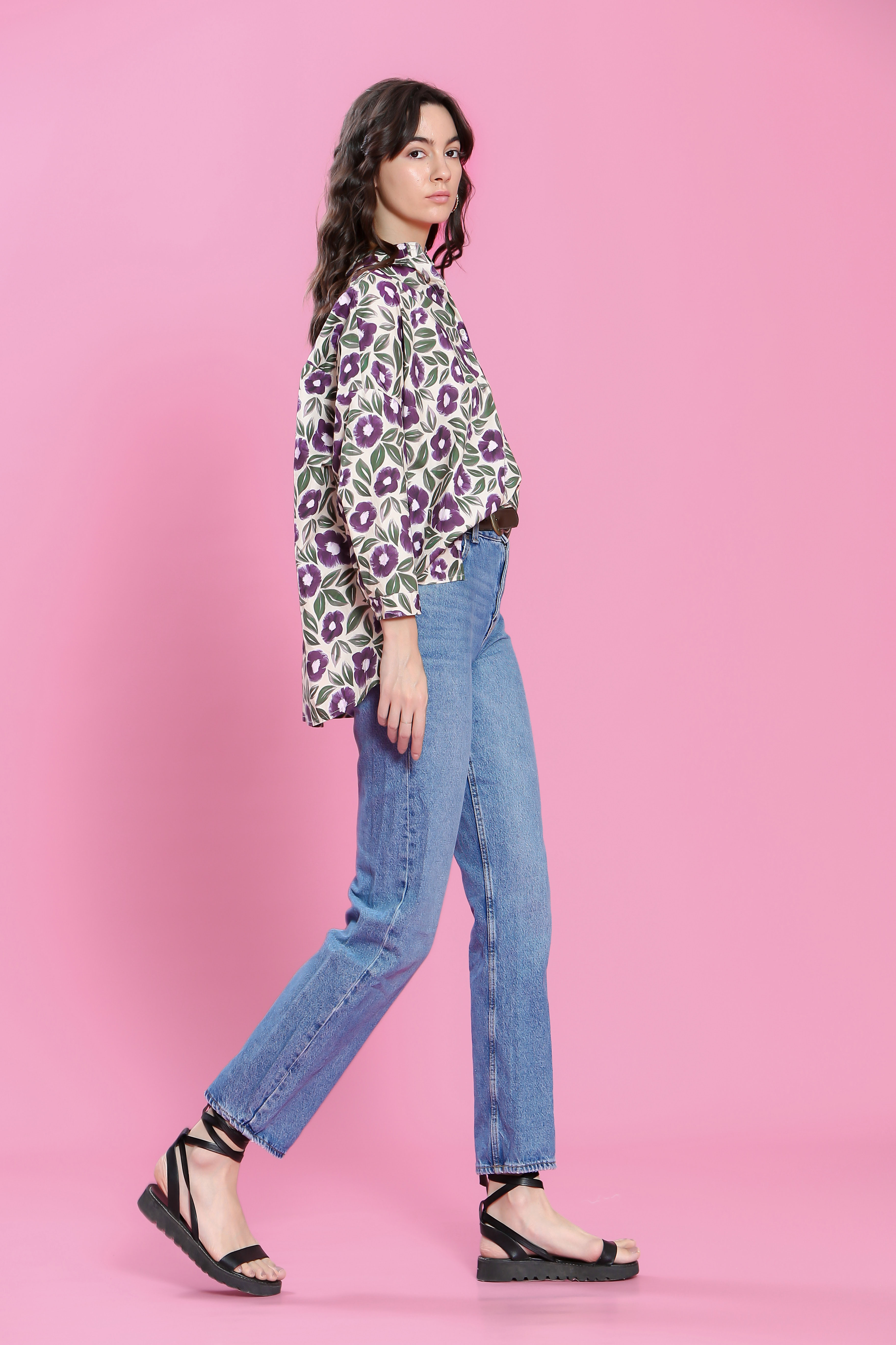 Chemise SLIM noire LENZING™ ECOVERO™ motif fleurs violines Homme