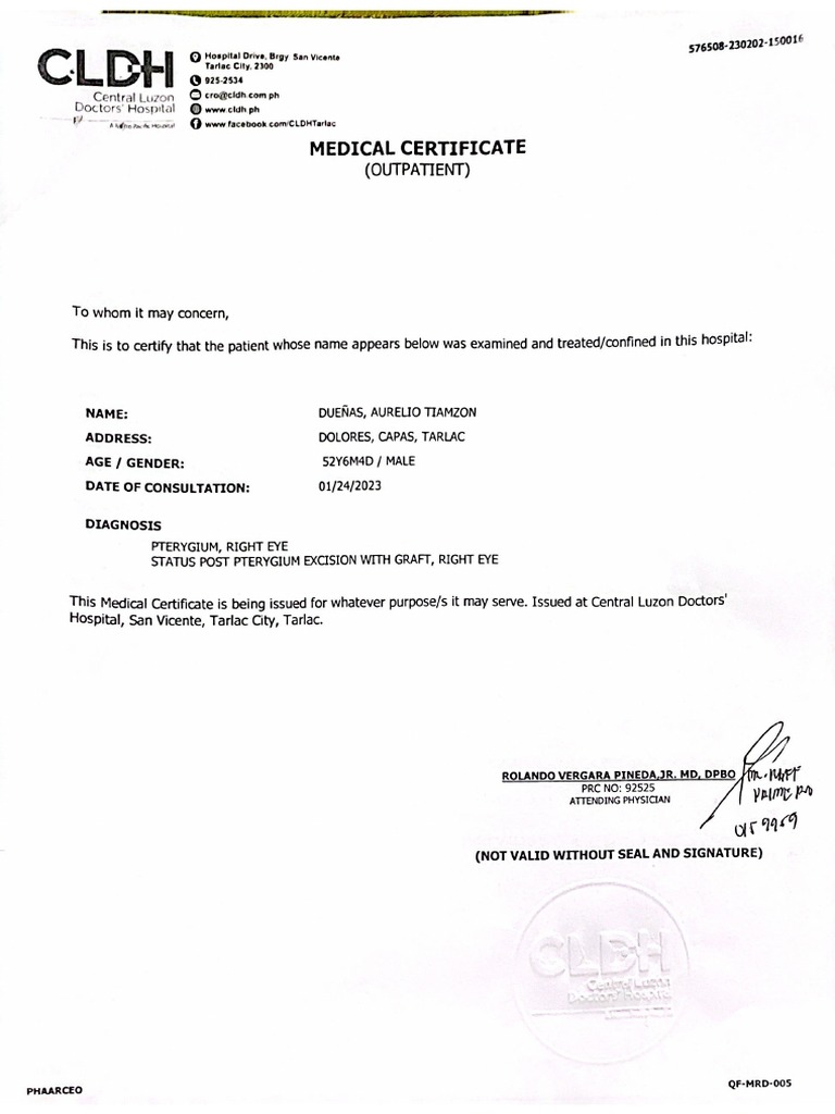Medical Certificate Sample PDF